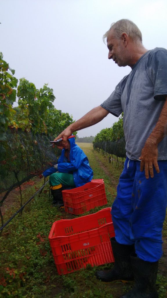 O vinhedo é conduzido em espaldeira, sendo o solo mantido com vegetação nativa e cobertura com palha de campo. No final da primavera, a uva é protegida de pássaros e abelhas por telas. A vindima é feita em fevereiro e março pelos próprios proprietários selecionando-se cacho a cacho, baga a baga, com a exclusão de tudo que esteja fora do padrão almejado de vitalidade e amadurecimento. As uvas são lavadas em água pura de poço profundo (para retirar os insetos e quaisquer materiais que não sejam a fruta) e conduzidas à câmara fria para secar e reduzir à temperatura para a fermentação.